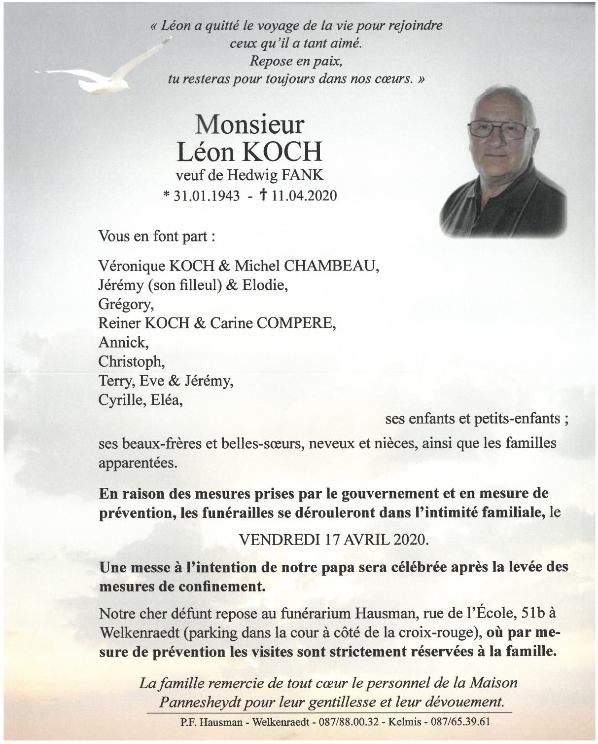 Fallecido en Montzen (4850) el sábado, 11 de abril de 2020 a la edad de 77 años