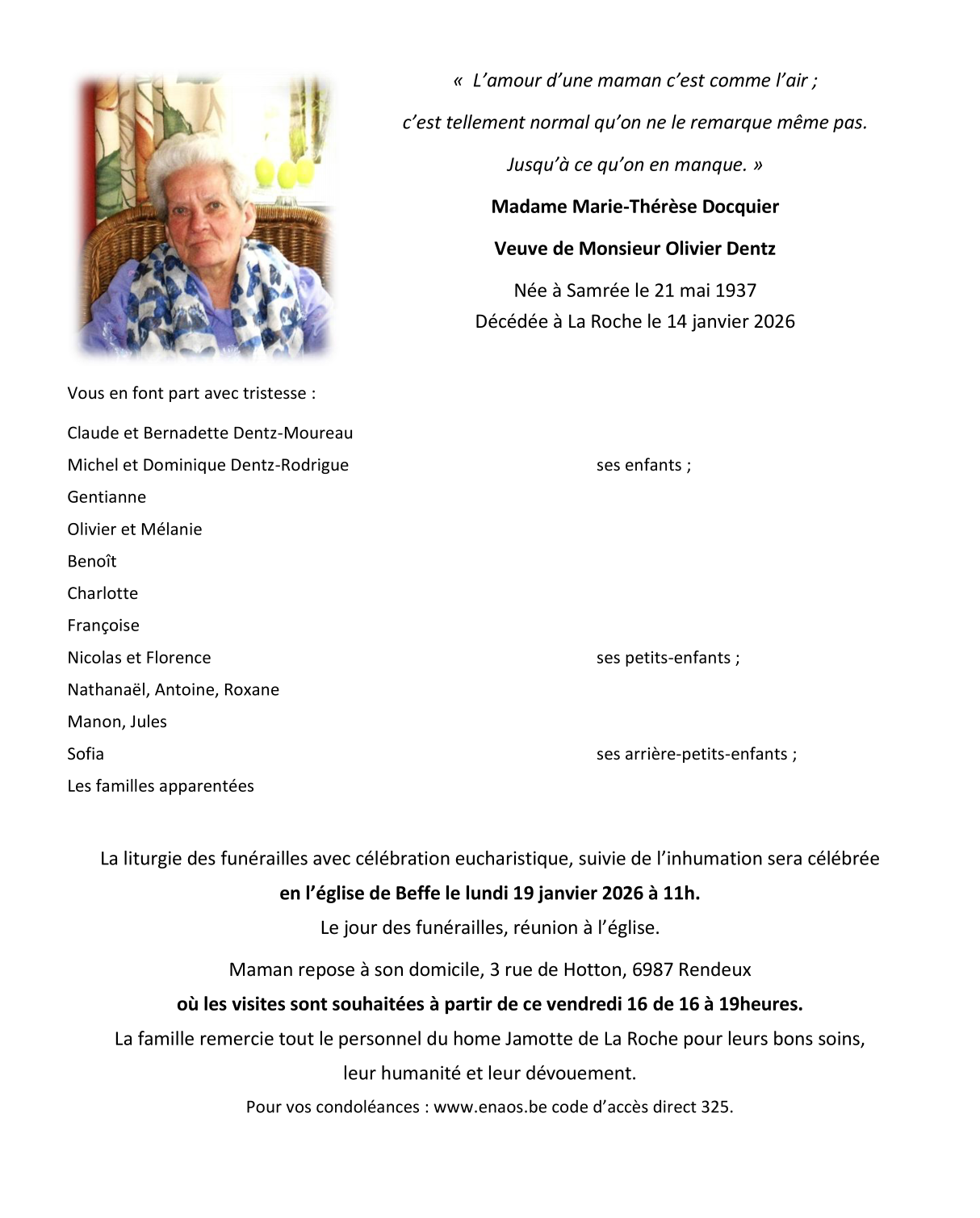 Madame Marie-Thérèse Dentz née DOCQUIER