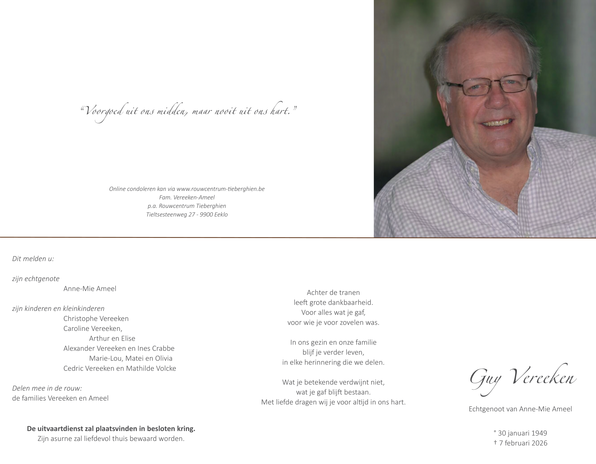 Overleden te Eeklo (9900) op zaterdag 7 februari 2026 op 77-jarige leeftijd