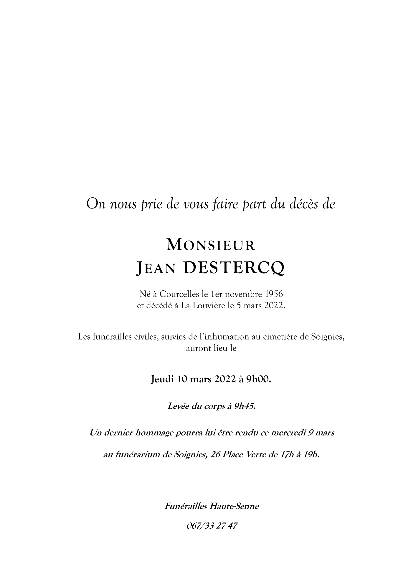 Died in La Louvière (7100) on 05 March 2022 at the age of 65 years