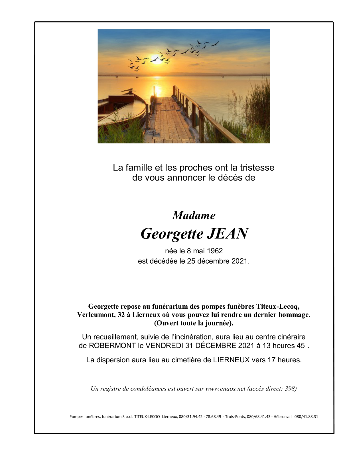 Décédée à Lierneux (4990) le samedi 25 décembre 2021 à l'âge de 59 ans