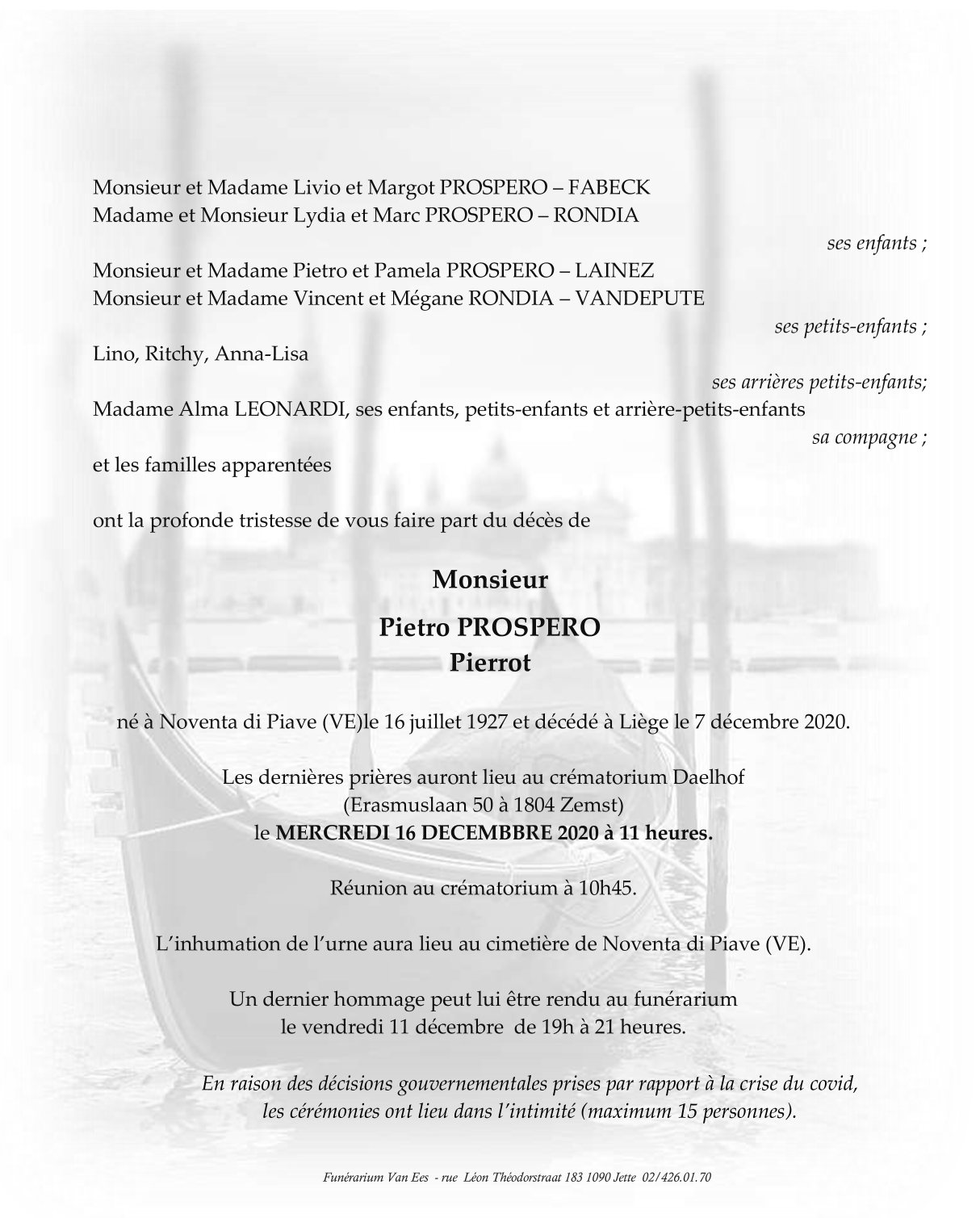 Décédé à Liège (4000) le mercredi 9 décembre 2020 à l'âge de 93 ans