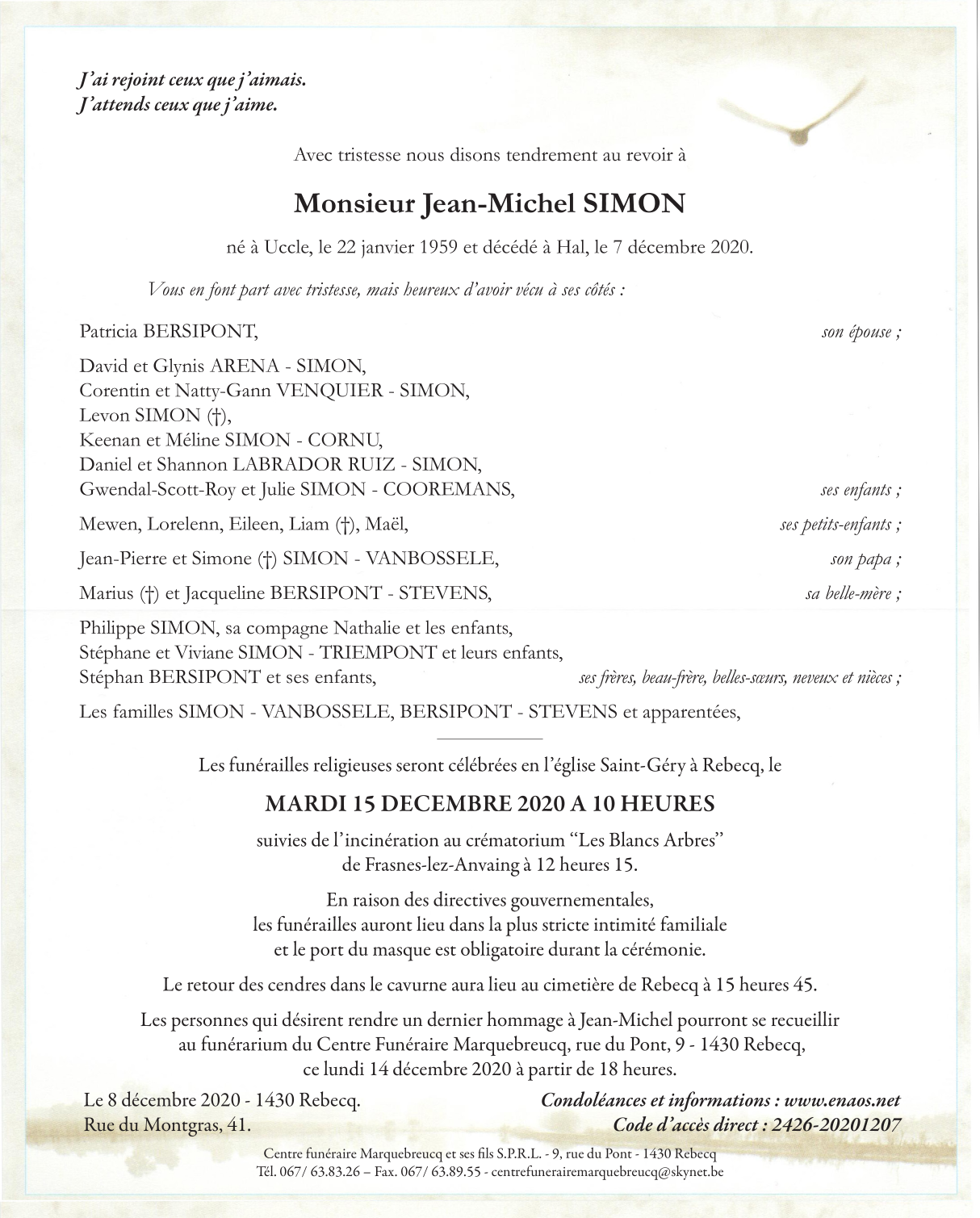 Décédé à Halle (1500) le lundi 7 décembre 2020 à l'âge de 61 ans