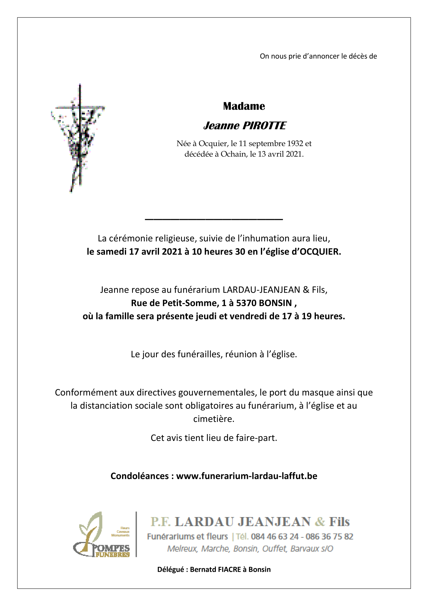 Overleden te Clavier (4560) op dinsdag 13 april 2021 op 88-jarige leeftijd