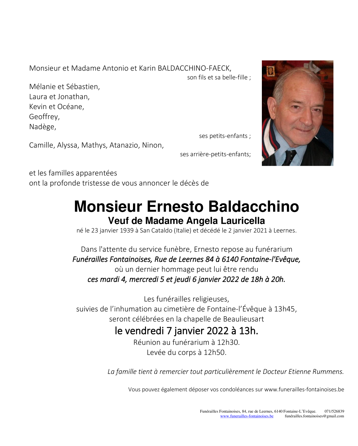 Overleden te Leernes (6142) op zondag 2 januari 2022 op 82-jarige leeftijd