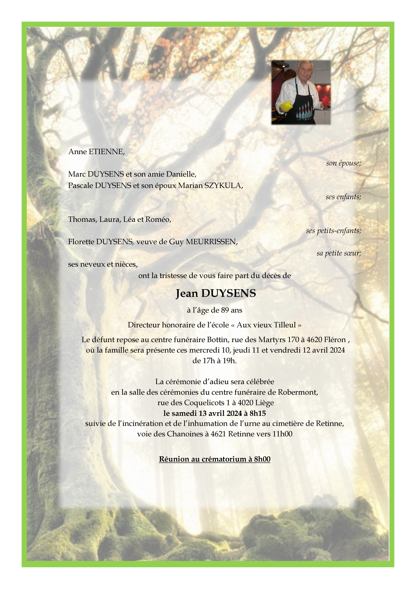 Décédé à Retinne (4621) le lundi 8 avril 2024 à l'âge de 89 ans