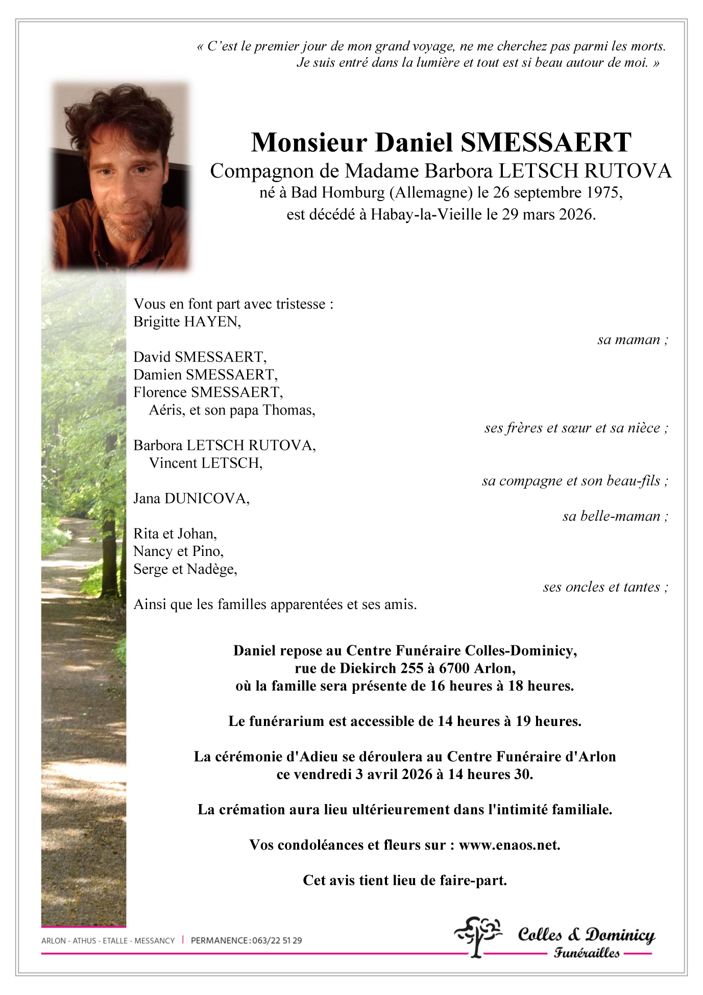 Décédé à Habay-la-Vieille (6723) le dimanche 29 mars 2026 à l'âge de 50 ans