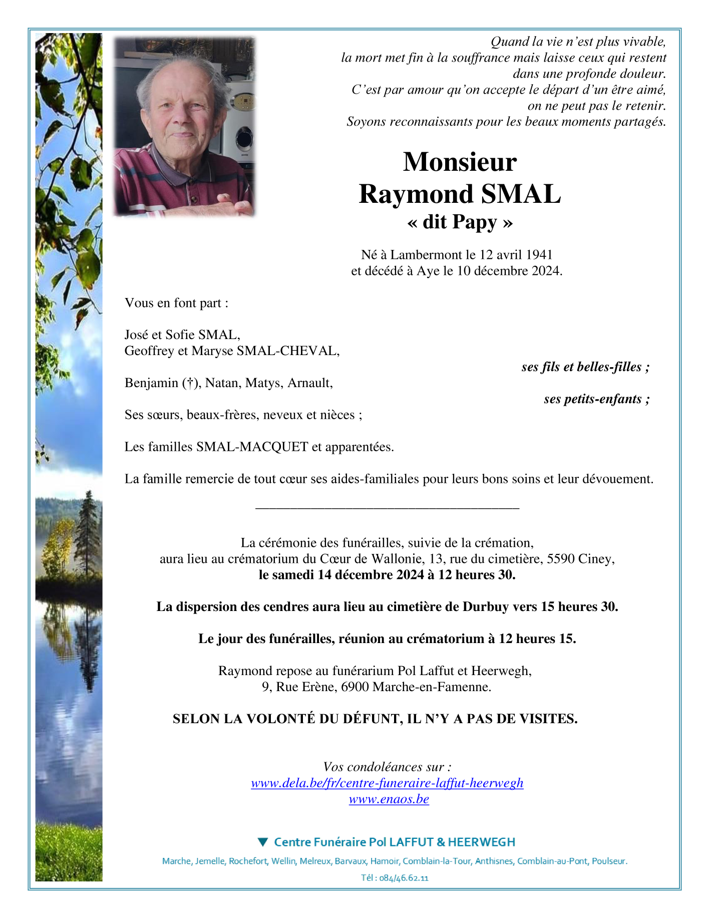 Décédé à Aye (6900) le mardi 10 décembre 2024 à l'âge de 83 ans