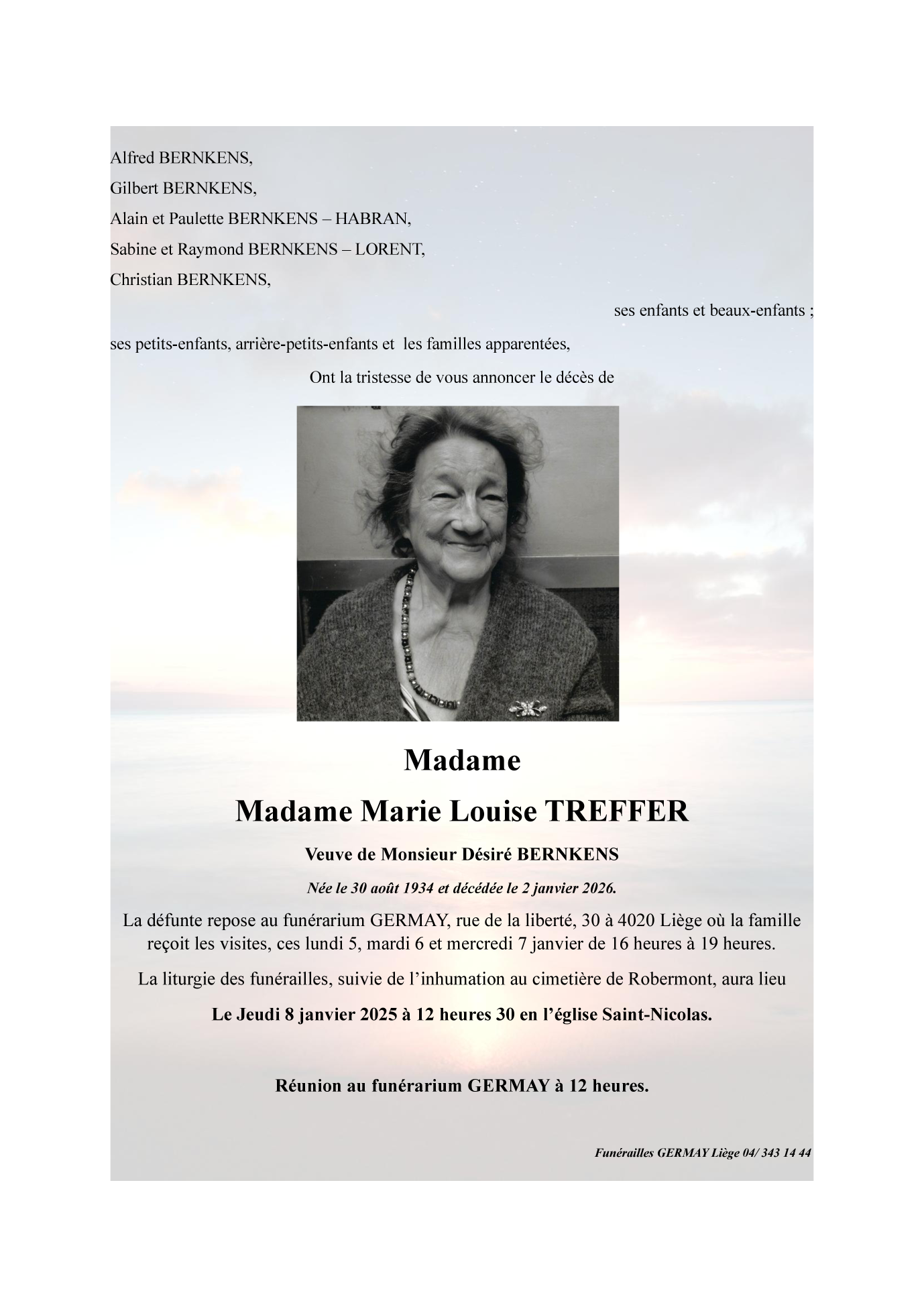 Fallecida en Liège (4000) el viernes, 2 de enero de 2026 a la edad de 91 años