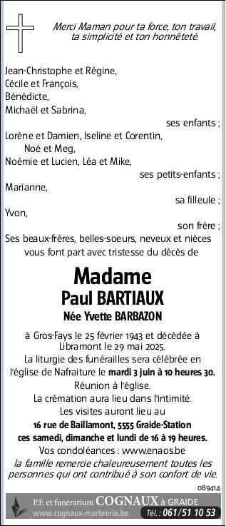 Died in Libramont (6800) on 29 May 2025 at the age of 82 years