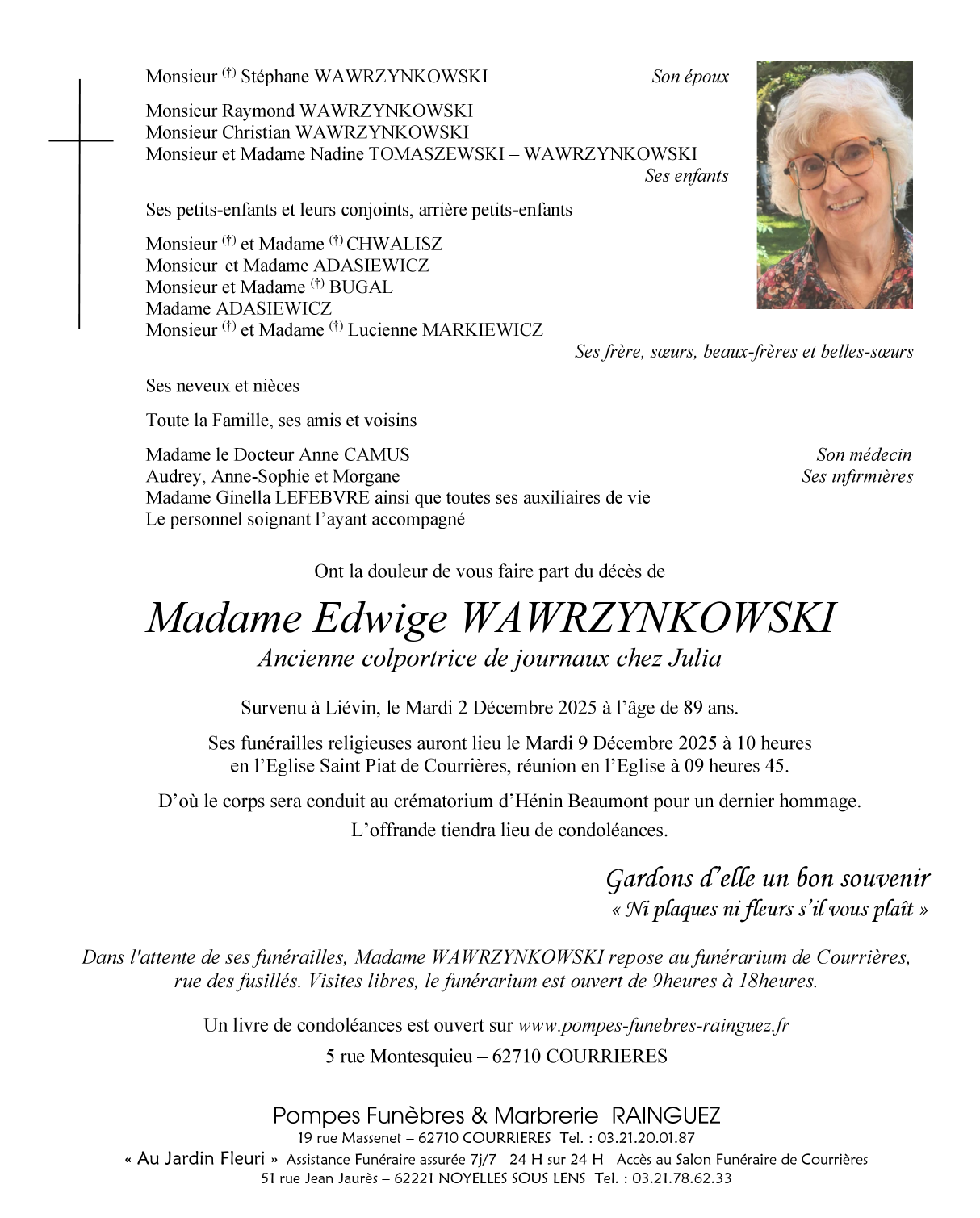 Weduwe van Monsieur Stèphane WAWRZYNKOWSKI