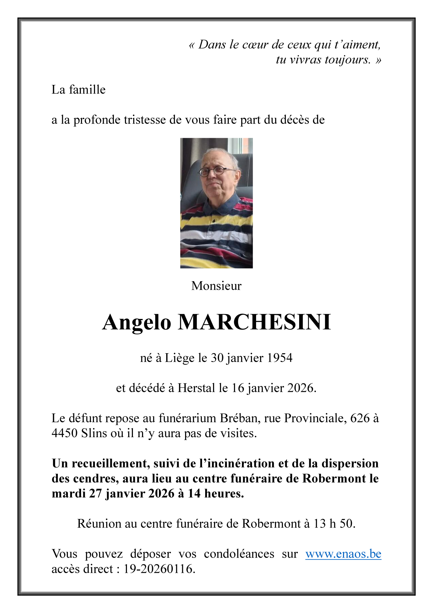 Overleden te Herstal (4040) op vrijdag 16 januari 2026 op 71-jarige leeftijd