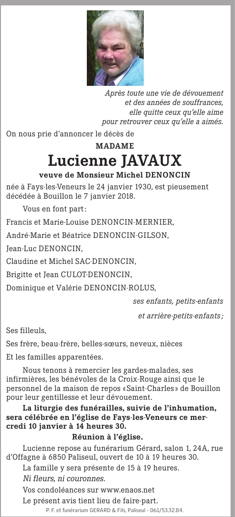 Overleden te Bouillon (6830) op zondag 7 januari 2018 op 87-jarige leeftijd