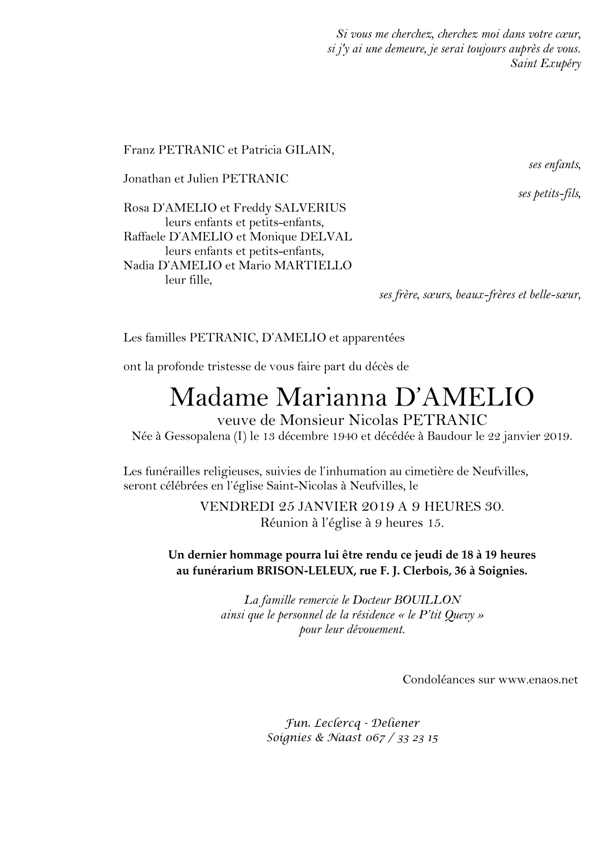 Overleden te Baudour (7331) op dinsdag 22 januari 2019 op 78-jarige leeftijd