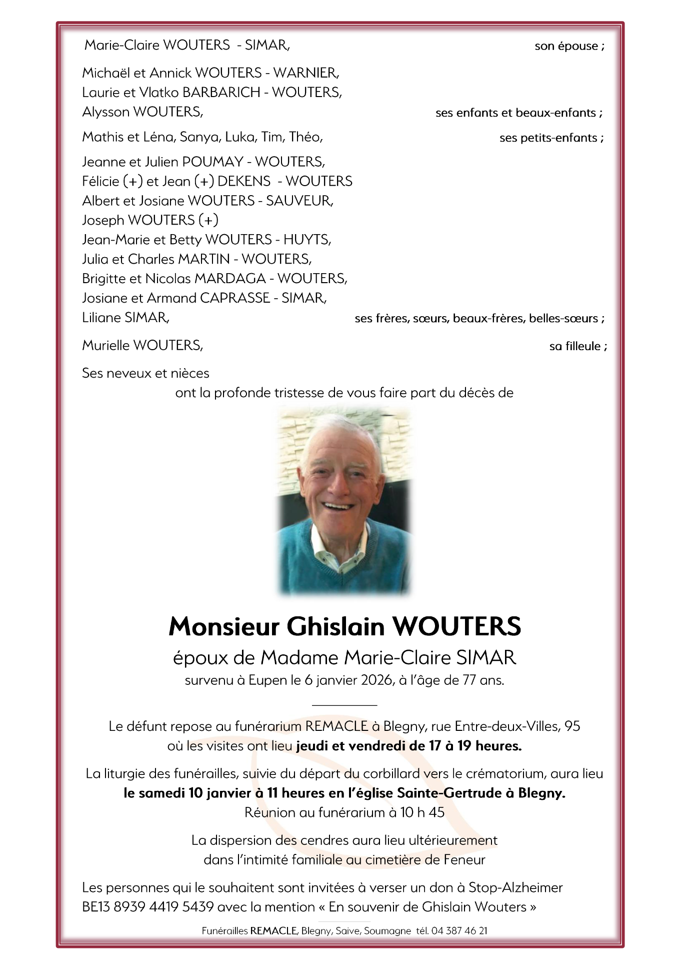 Décédé à Eupen (4700) le mardi 6 janvier 2026 à l'âge de 77 ans