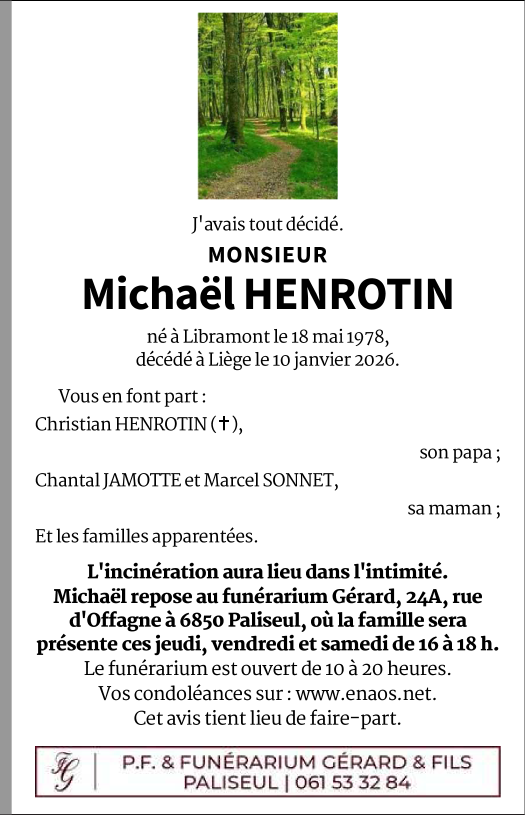 Décédé à Liège (4000) le mardi 13 janvier 2026 à l'âge de 47 ans