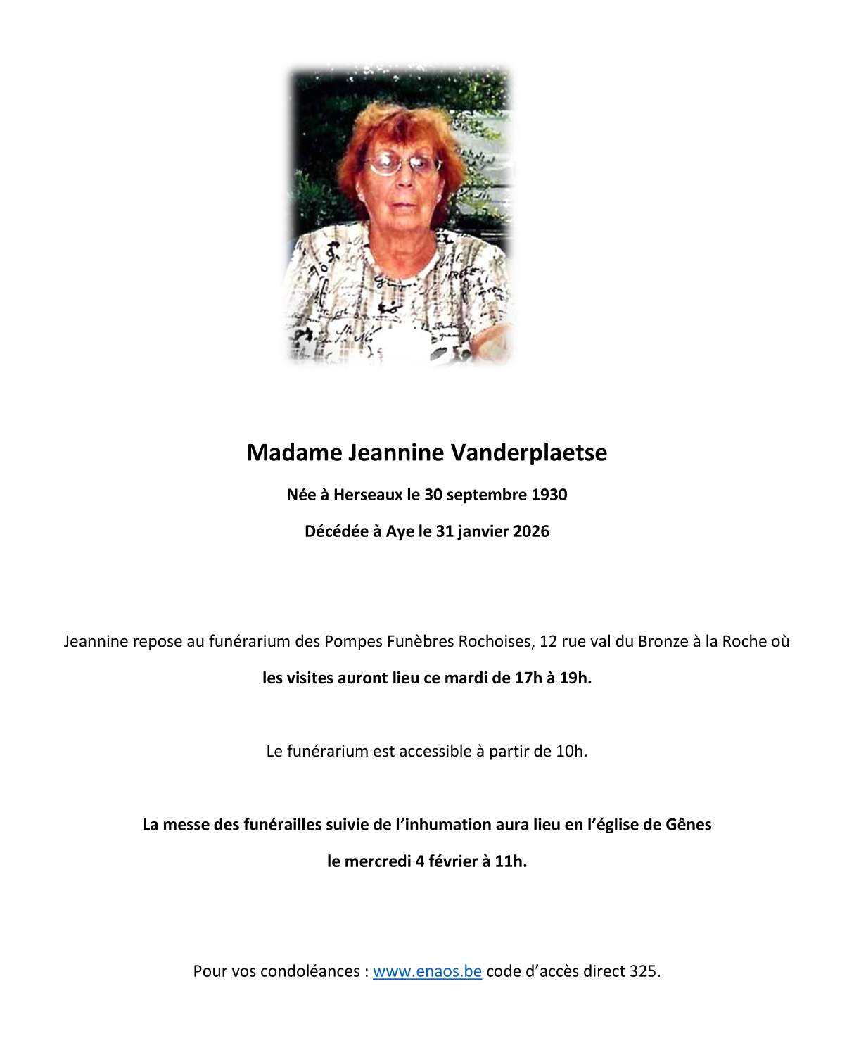 Overleden te Aye (6900) op zaterdag 31 januari 2026 op 95-jarige leeftijd