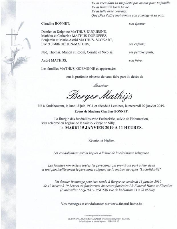 Died in Lessines (7860) on 09 January 2019 at the age of 87 years