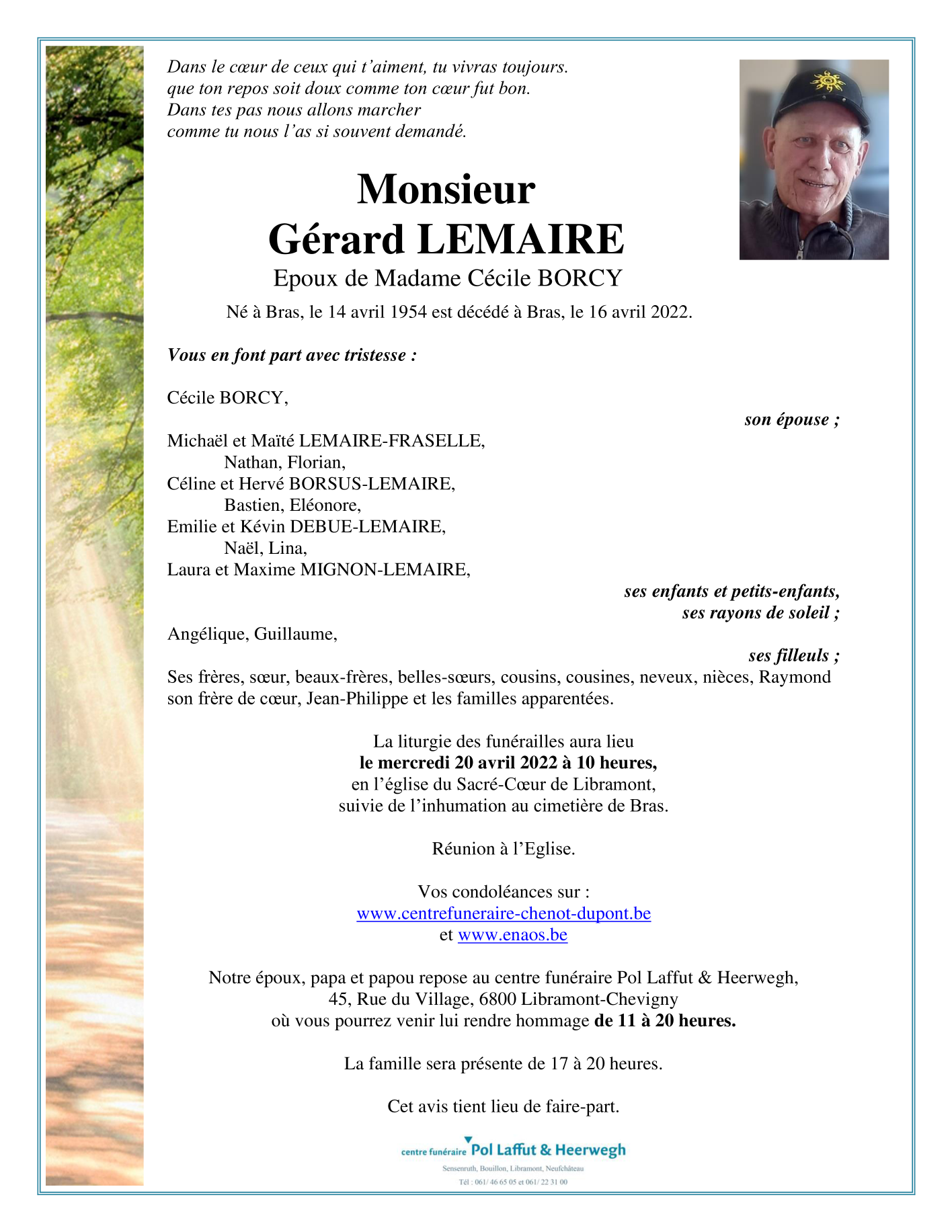 Overleden te Bras (6800) op zaterdag 16 april 2022 op 68-jarige leeftijd