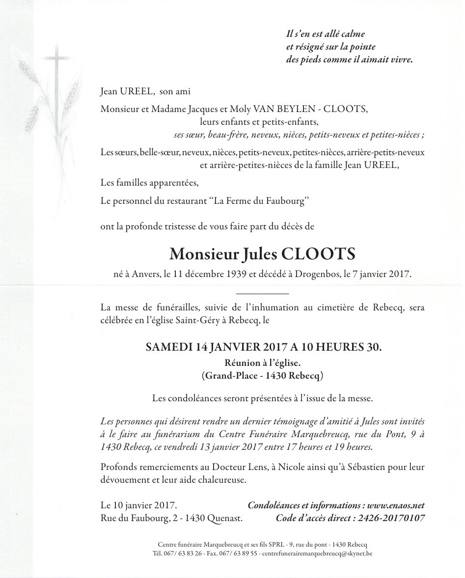 Décédé à Drogenbos (1620) le samedi 7 janvier 2017 à l'âge de 77 ans