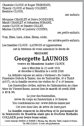 Madame Georgette LAUNOIS