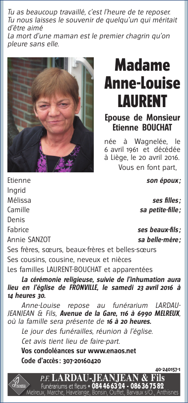Fallecido en Liège (4000) el miércoles, 20 de abril de 2016 a la edad de 55 años