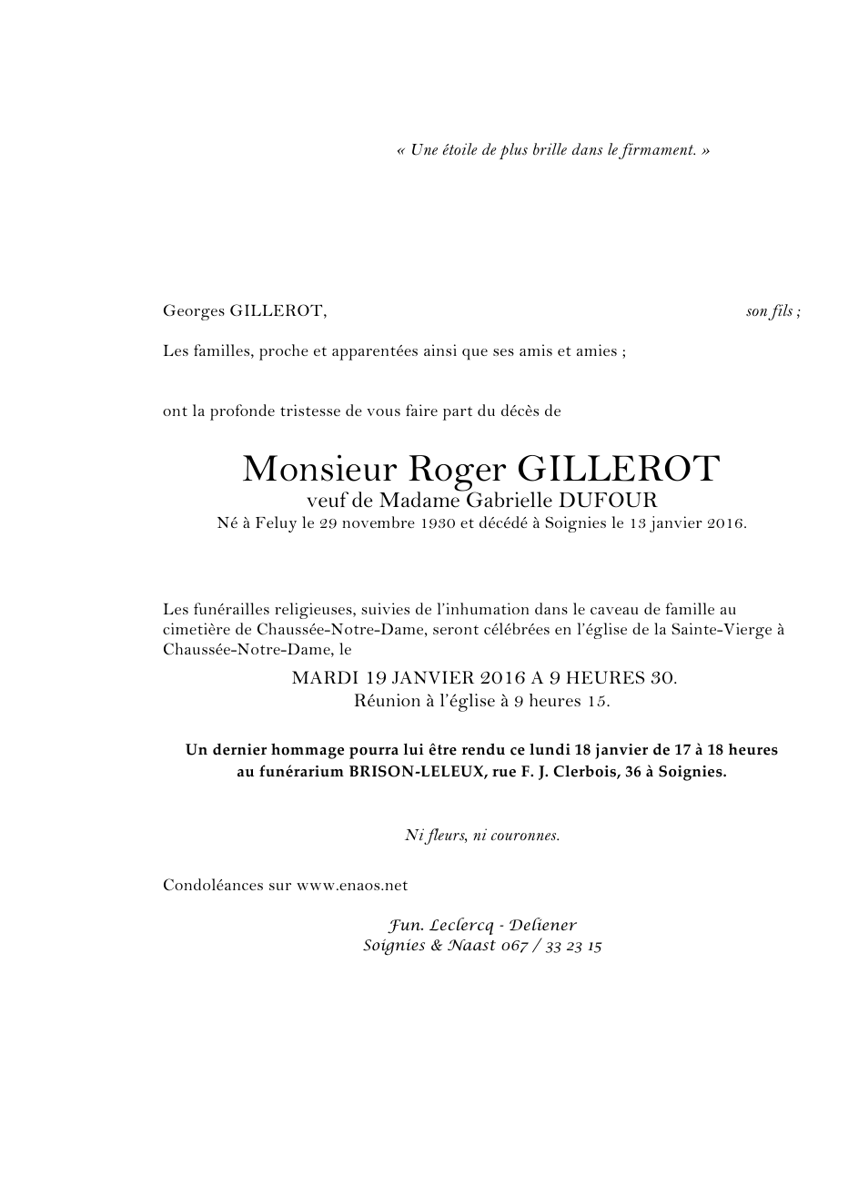 Died in Soignies (7060) on 13 January 2016 at the age of 85 years