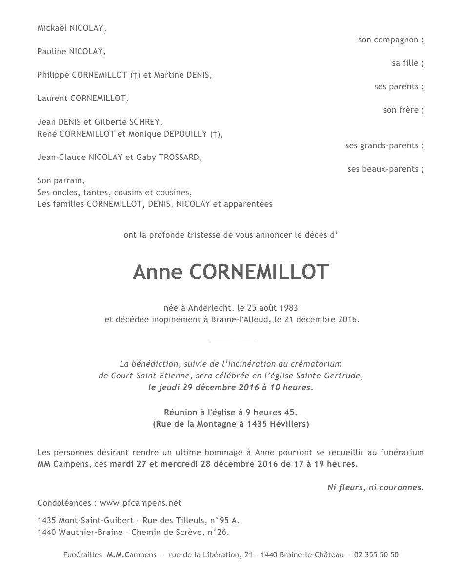 Overleden te Braine-l'Alleud (1420) op woensdag 21 december 2016 op 33-jarige leeftijd