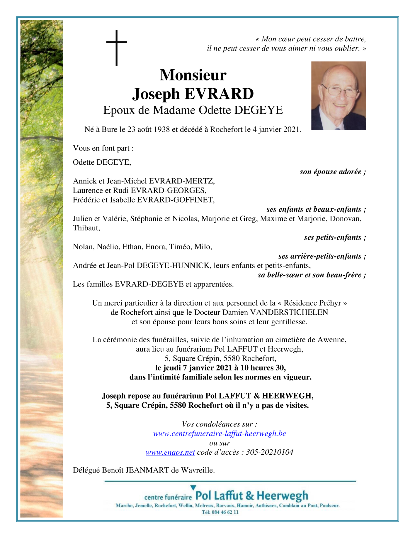 Décédé à Rochefort (5580) le lundi 4 janvier 2021 à l'âge de 82 ans