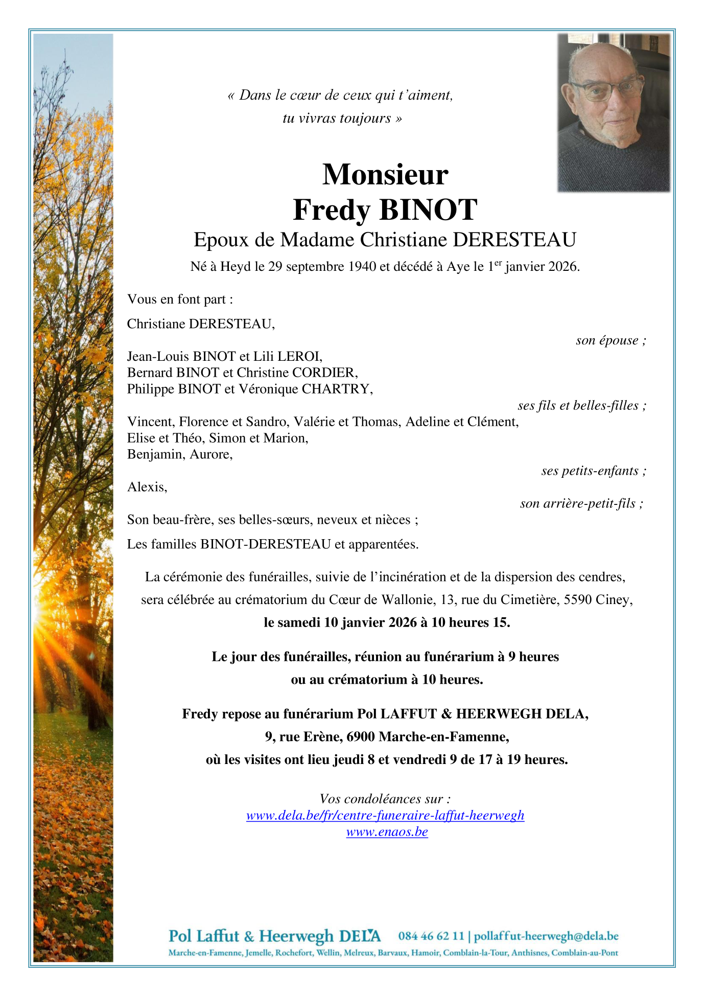 Fallecido en Aye (6900) el jueves, 1 de enero de 2026 a la edad de 85 años