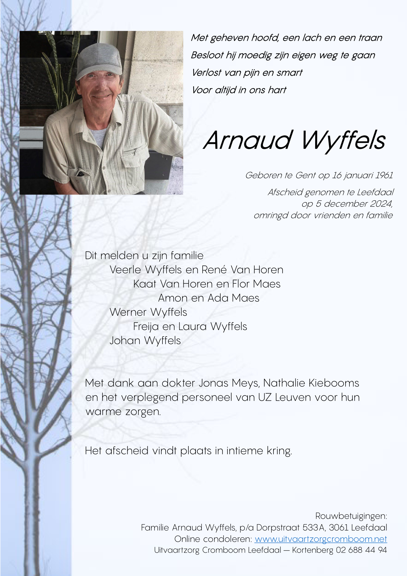 Décédé à Leefdaal (3061) le jeudi 5 décembre 2024 à l'âge de 63 ans