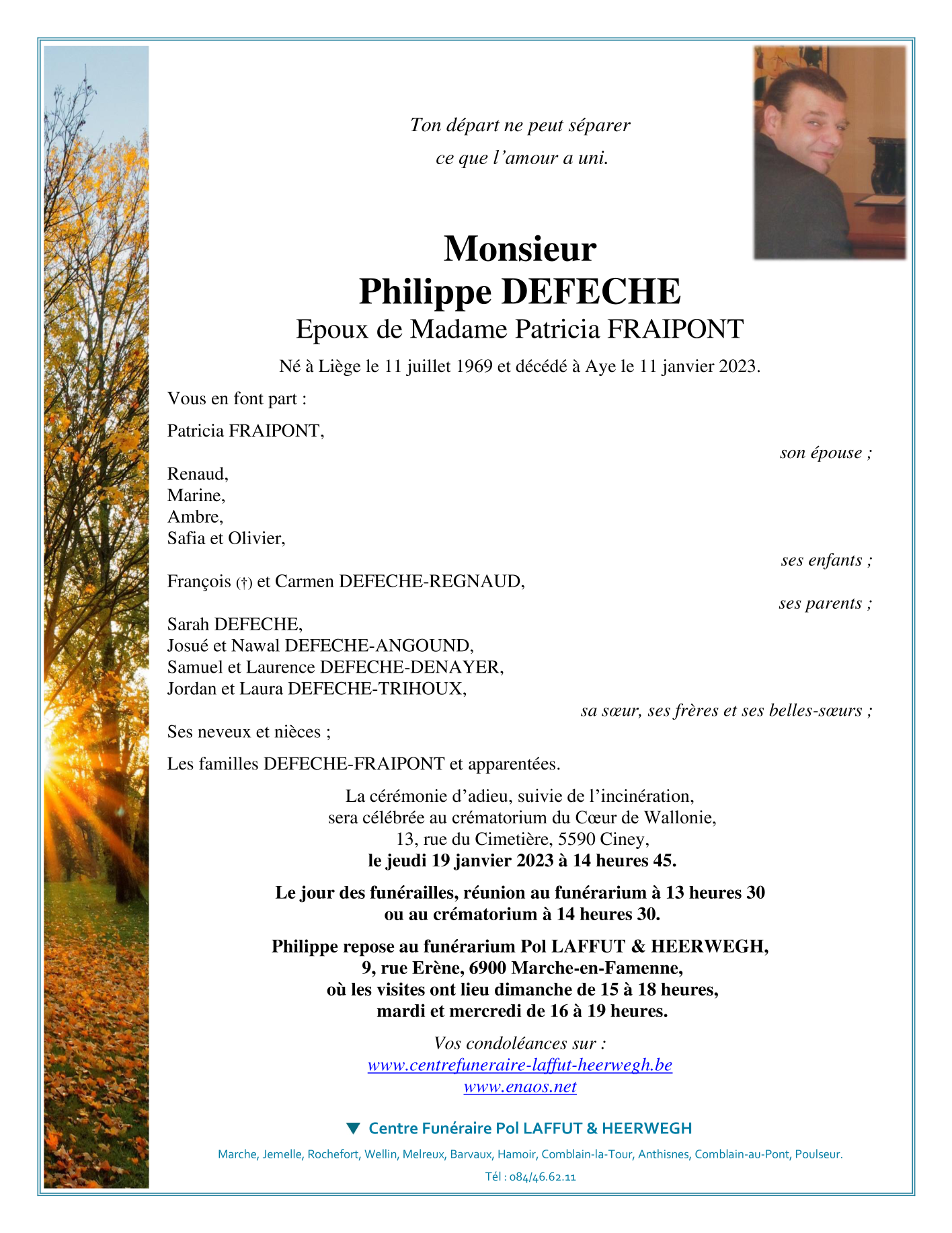 Décédé à Aye (6900) le mercredi 11 janvier 2023 à l'âge de 53 ans