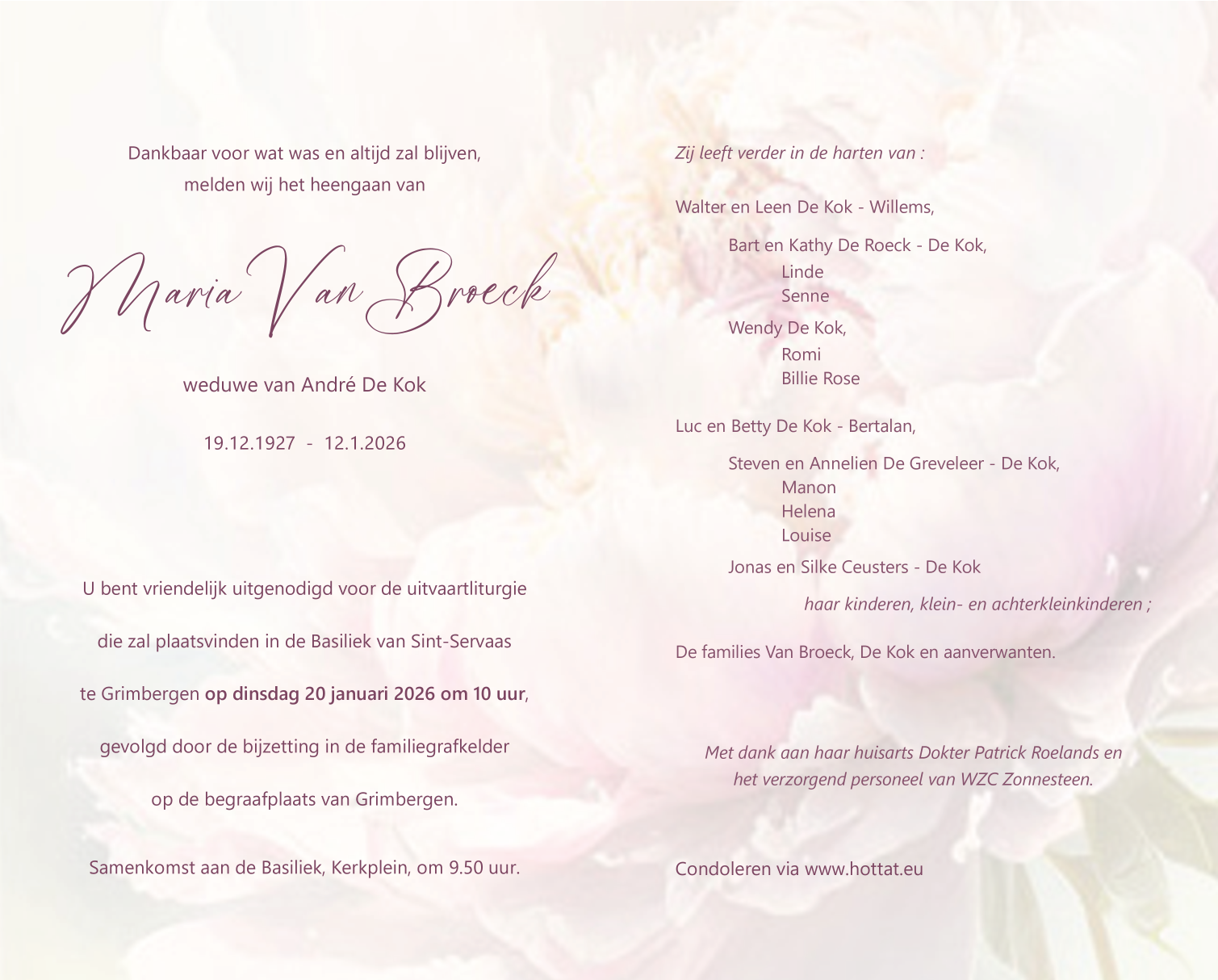 Décédée à Vilvoorde (1800) le lundi 12 janvier 2026 à l'âge de 98 ans