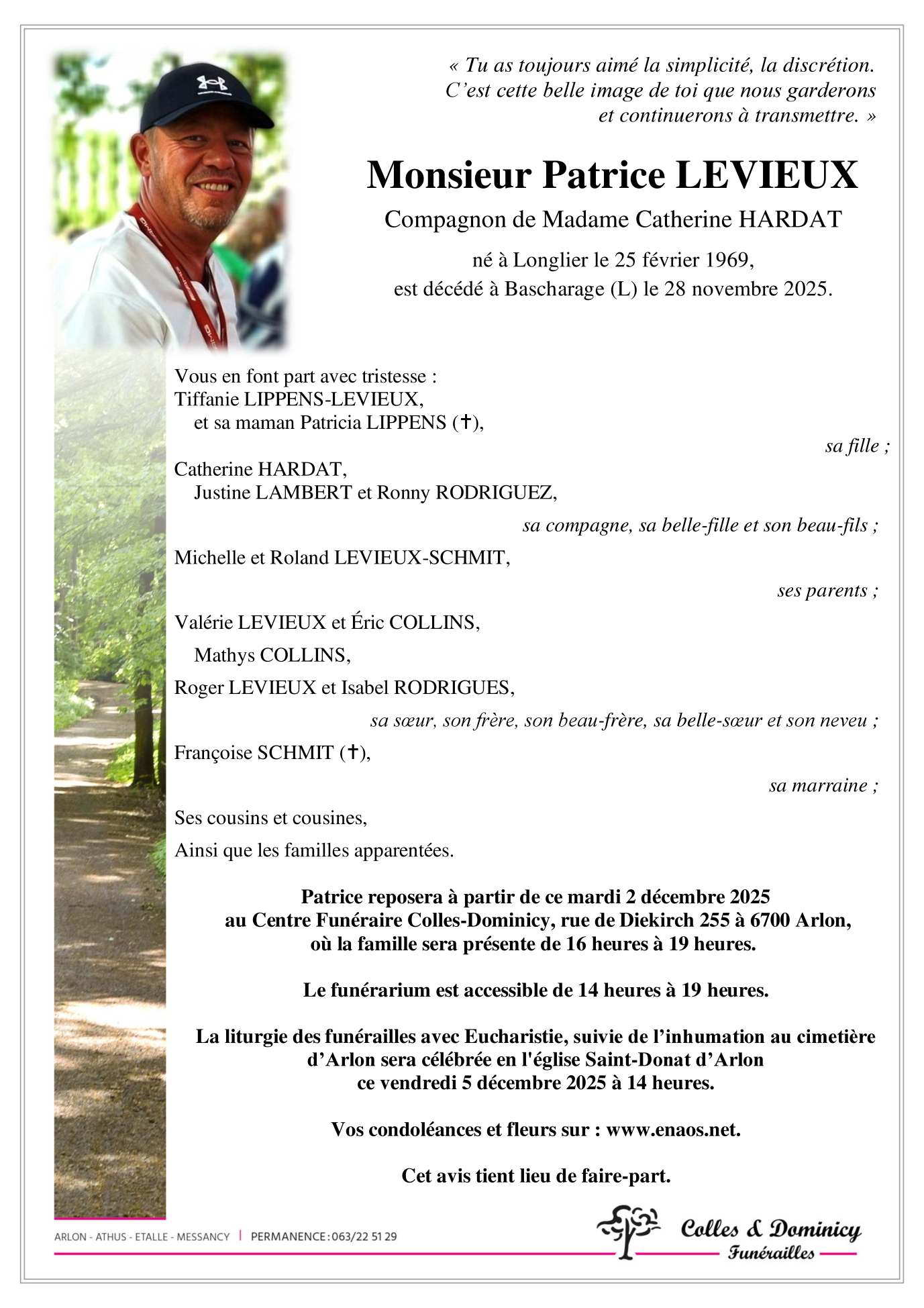Fallecido en Bascharage/Ateliers  (4908, Luxemburgo) el viernes, 28 de noviembre de 2025 a la edad de 56 años