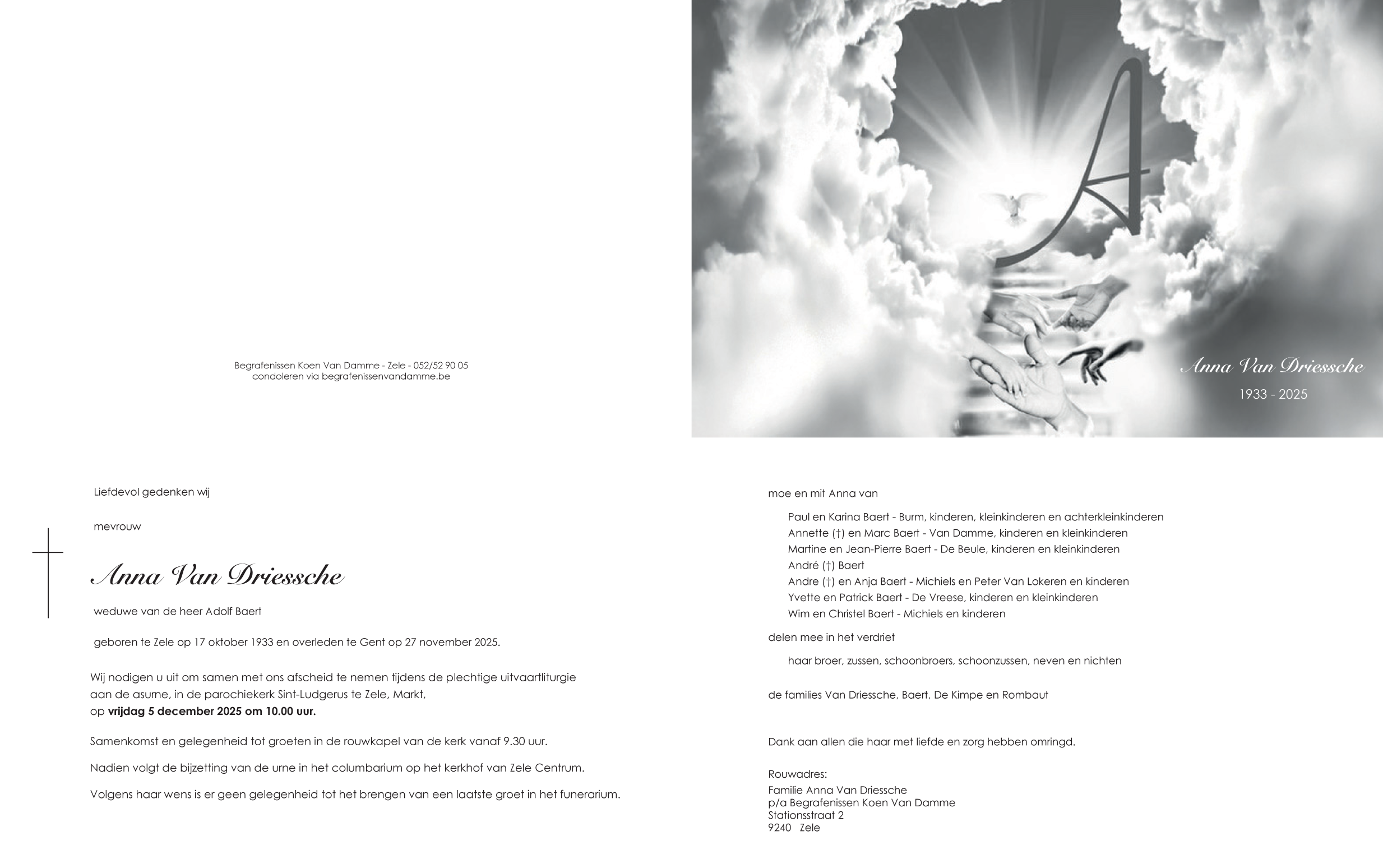 Décédée à Gent (9000) le jeudi 27 novembre 2025 à l'âge de 92 ans
