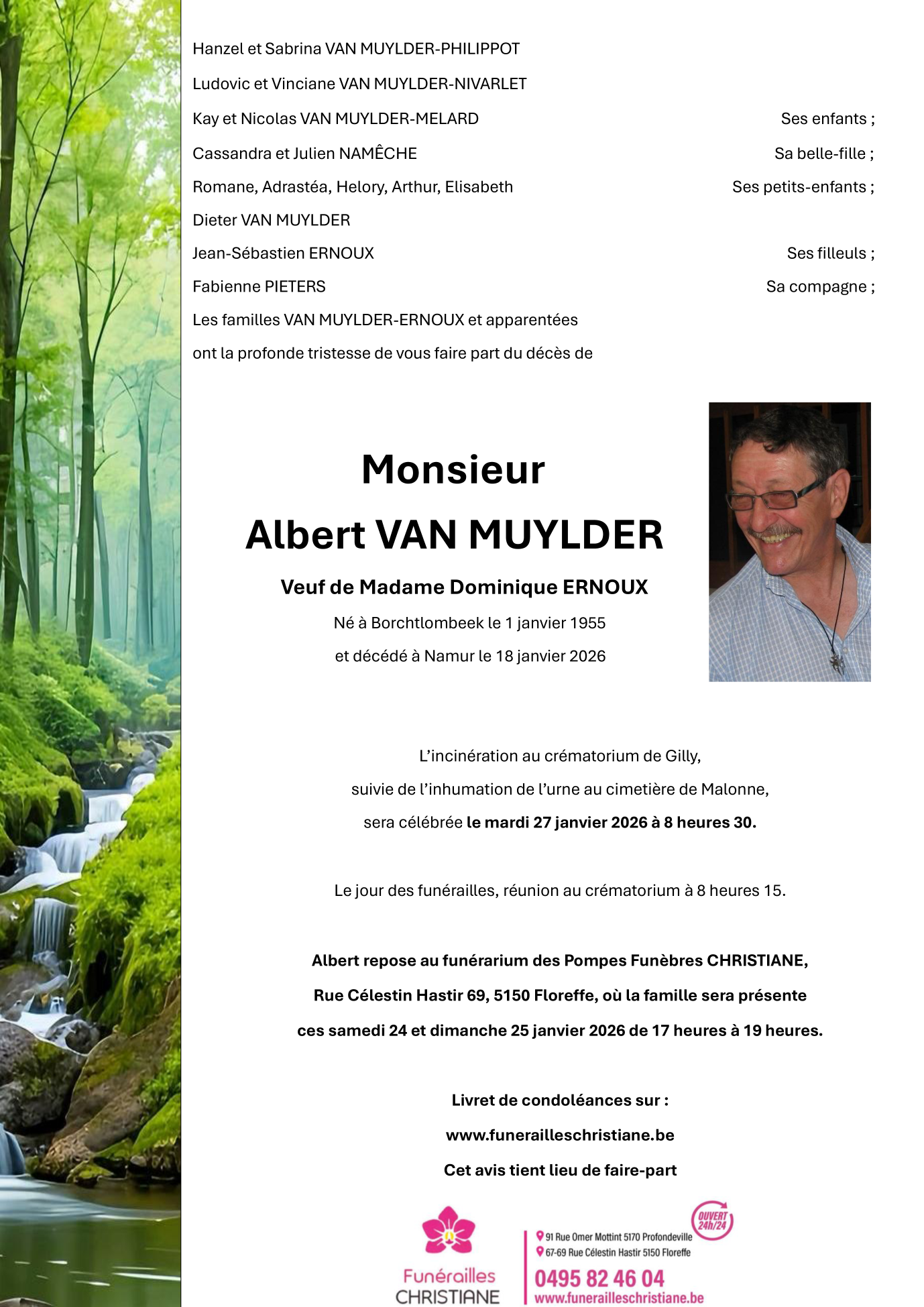 Décédé à Namur (5000) le dimanche 18 janvier 2026 à l'âge de 71 ans