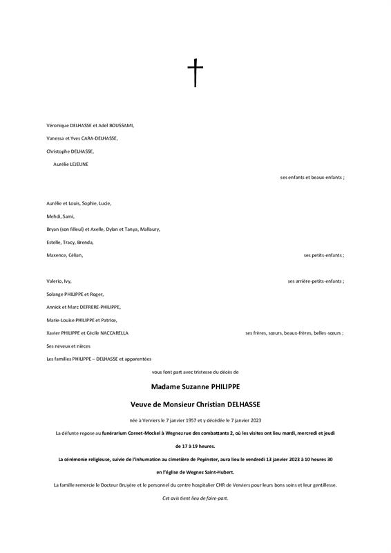Weduwe van Monsieur Christian DELHASSE