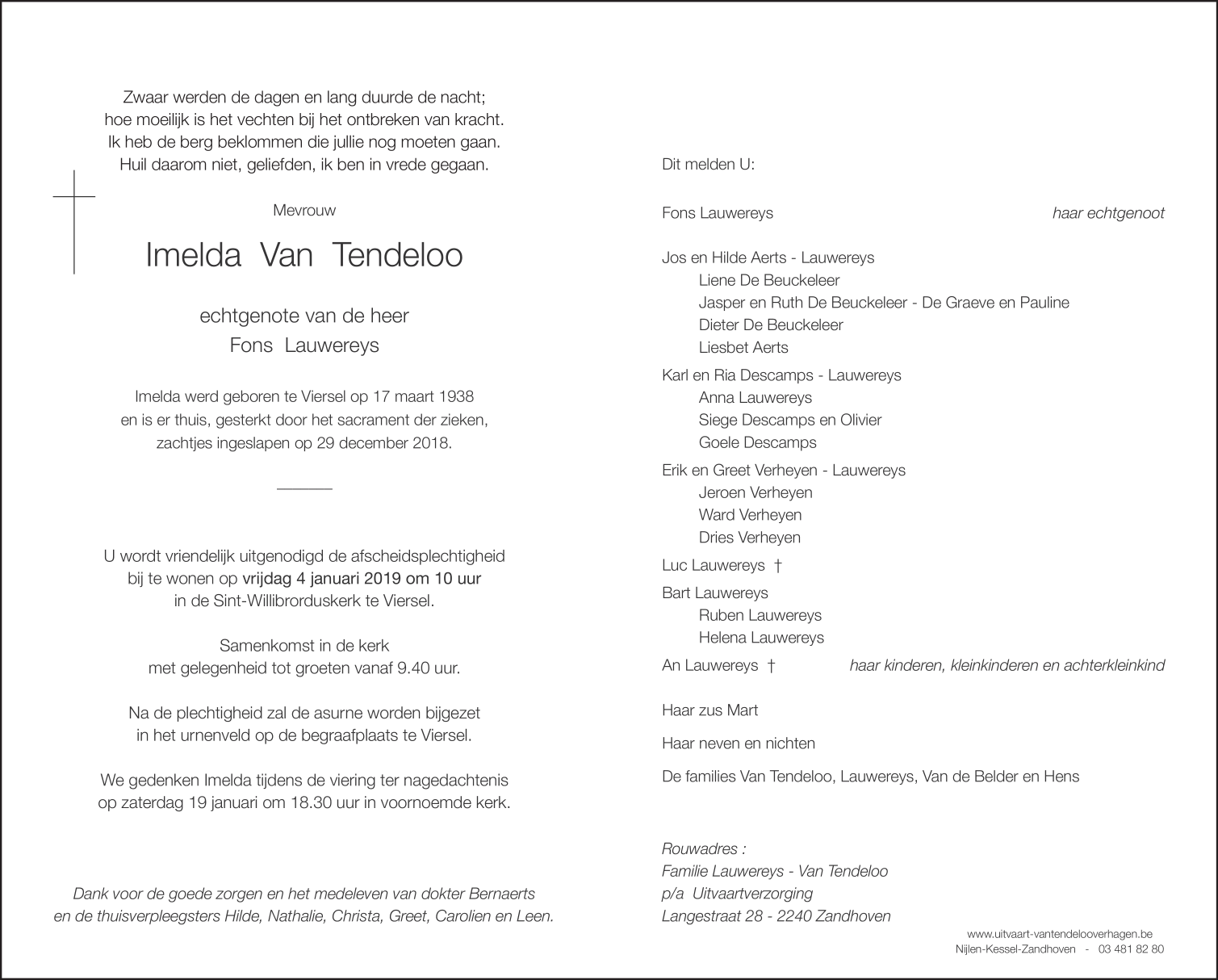 Overleden te Viersel (2240) op zaterdag 29 december 2018 op 80-jarige leeftijd