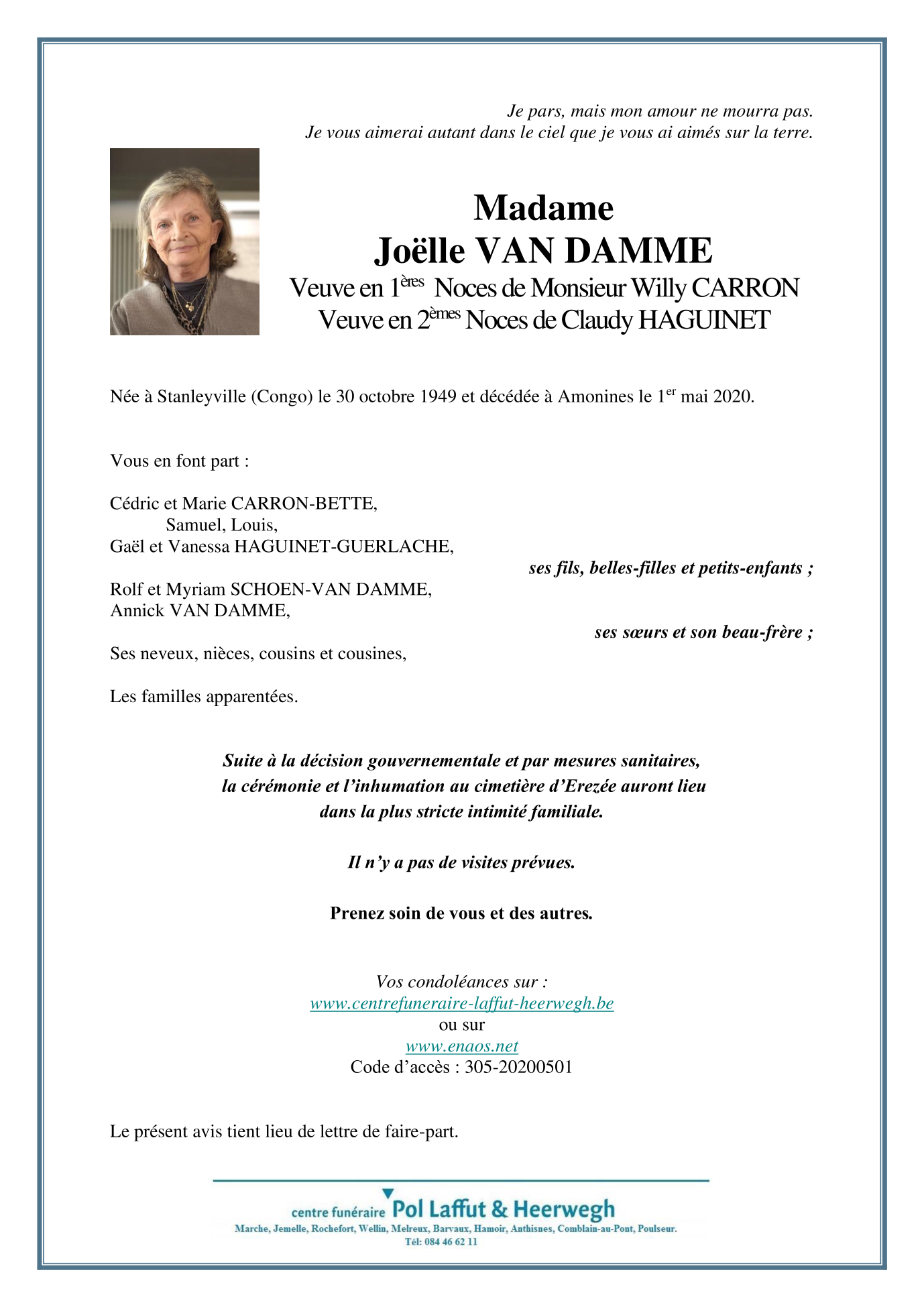 Fallecida en Amonines (6997) el viernes, 1 de mayo de 2020 a la edad de 70 años