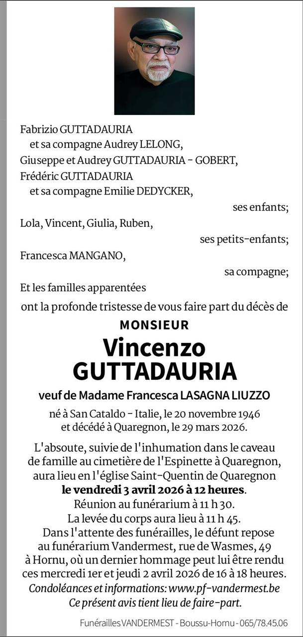 Overleden te Quaregnon (7390) op zondag 29 maart 2026 op 79-jarige leeftijd