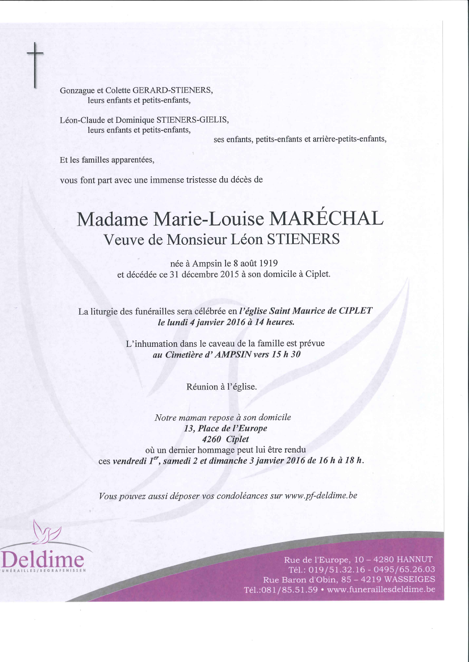 Décédée à Ciplet (4260) le jeudi 31 décembre 2015 à l'âge de 96 ans