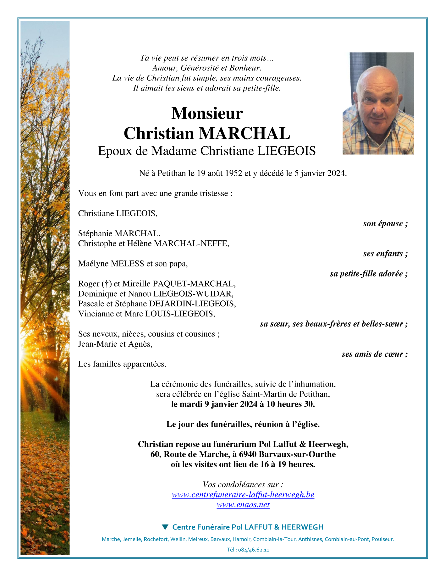 Died in Petit-Han (6940) on 05 January 2024 at the age of 71 years