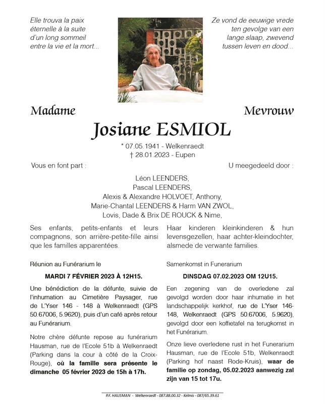 Overleden te Eupen (4700) op zaterdag 28 januari 2023 op 81-jarige leeftijd