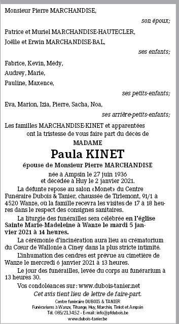 Overleden te Huy (4500) op zaterdag 2 januari 2021 op 84-jarige leeftijd