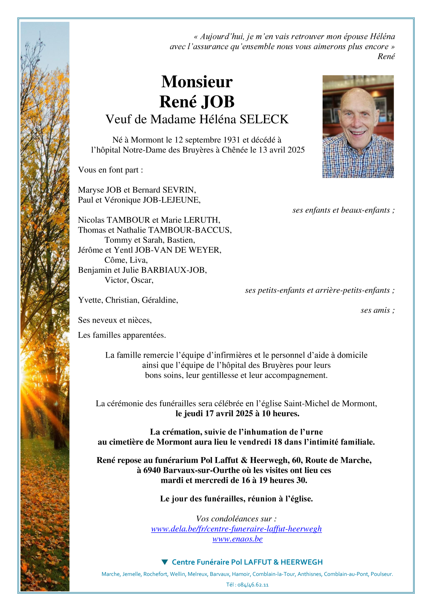 Décédé à Chênée (4032) le dimanche 13 avril 2025 à l'âge de 93 ans