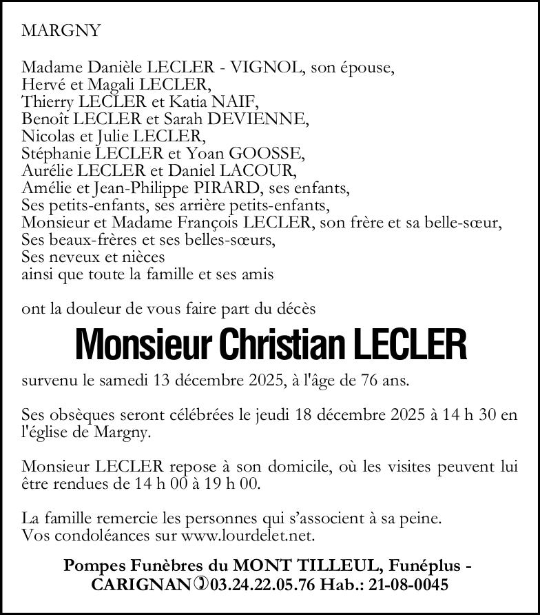Décédé à Margny (08370, France) le samedi 13 décembre 2025 à l'âge de 76 ans