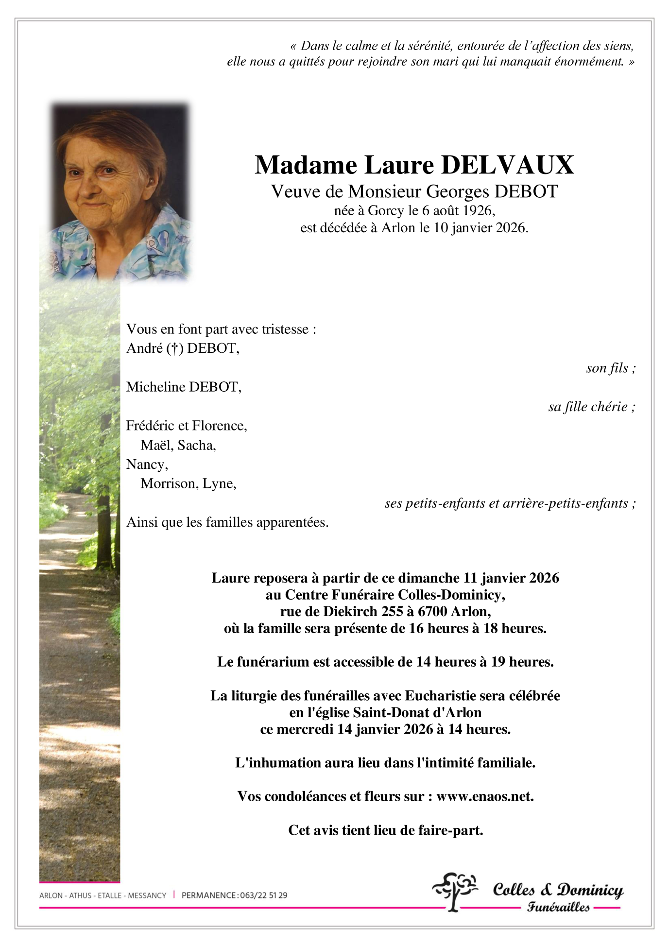 Overleden te Arlon (6700) op zaterdag 10 januari 2026 op 99-jarige leeftijd