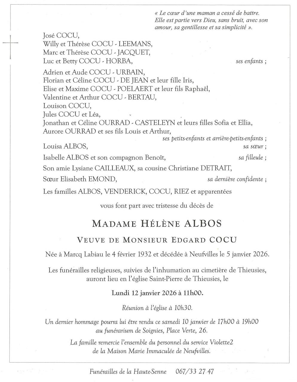 Overleden te Neufvilles (7063) op maandag 5 januari 2026 op 93-jarige leeftijd