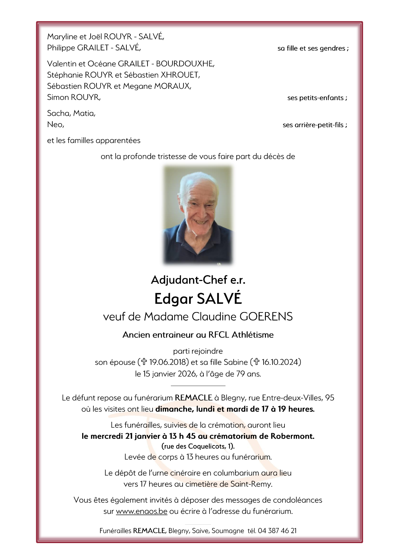 Décédé à Blegny (4670) le jeudi 15 janvier 2026 à l'âge de 79 ans