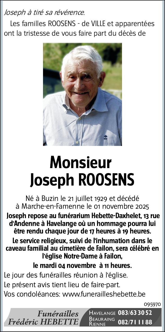 Died in Marche-en-Famenne (6900) on 01 November 2025 at the age of 96 years